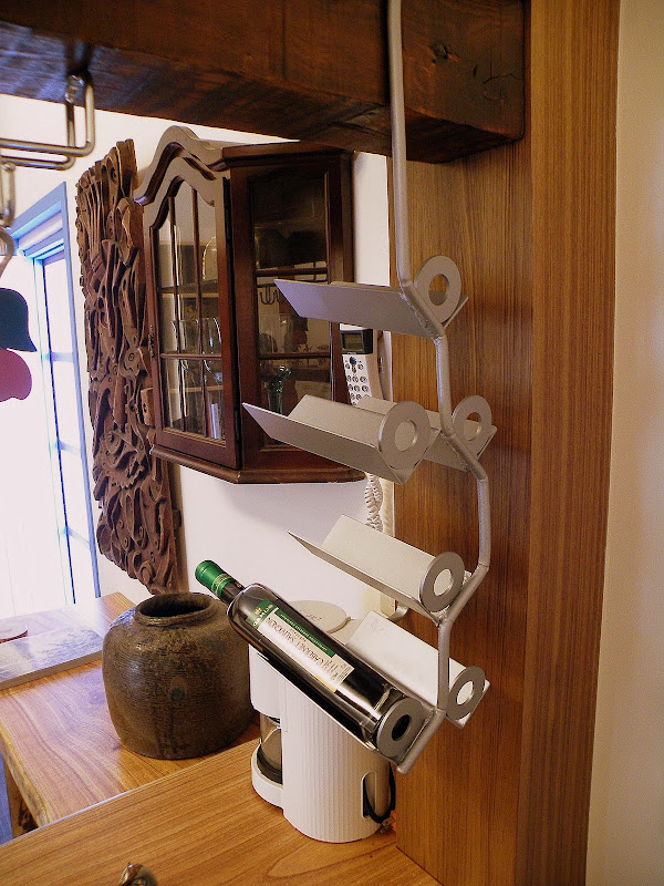 二姐的裝潢師傅同學也不遑多讓,當時設計時找不到合適的酒瓶架,索性就自己焊燒一個出來,厲害。