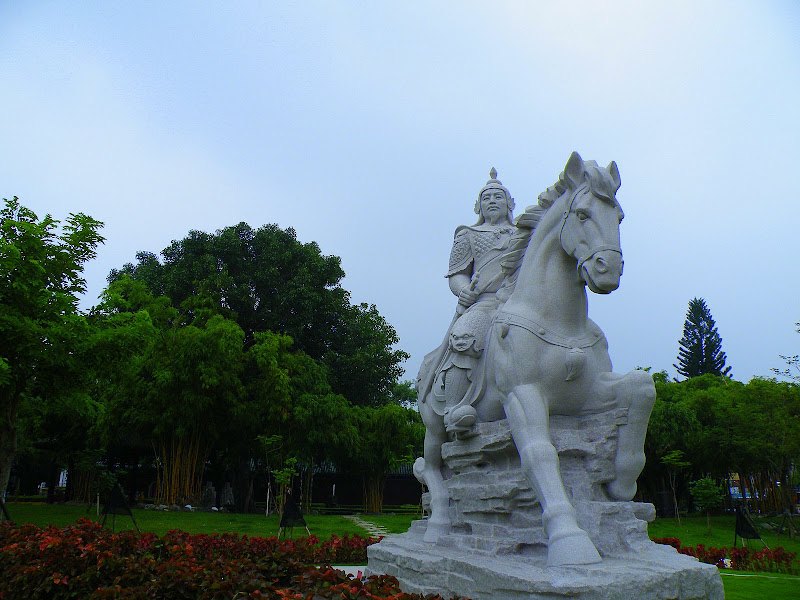 此即鄭成功塑像,為名雕塑家楊英風依照鄭成功畫像所塑,前些時候才重新整修粉刷,不過看法兩極,唯一可以確定的是,鄭成功是個帥哥。
